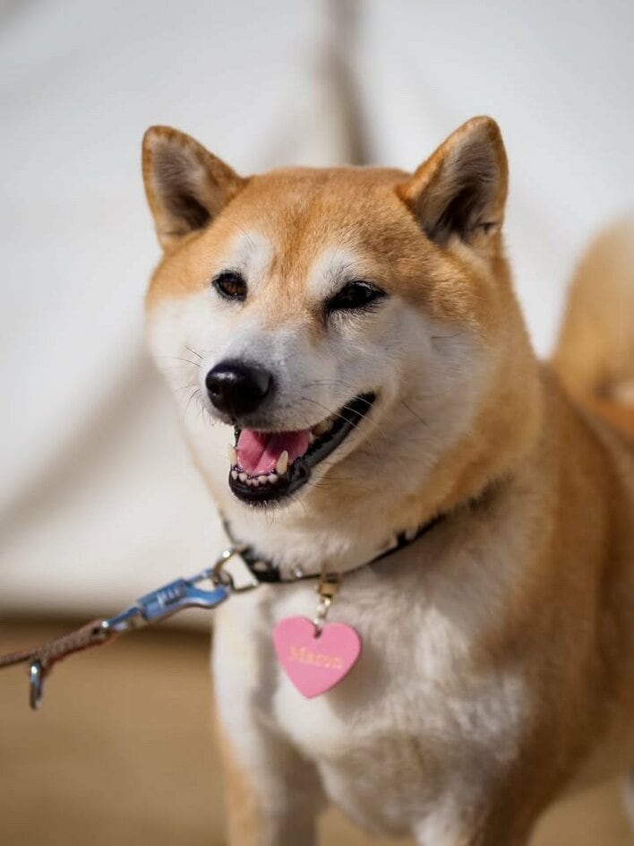 歯を見せてニコッととびきりのスマイルを見せているのは、6歳の柴犬「マロン」ちゃん。