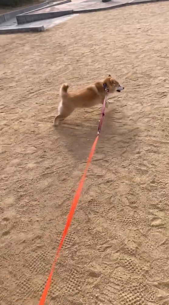 その後も、マロンちゃんはリードを豪快に振りながら右側でクルクル。