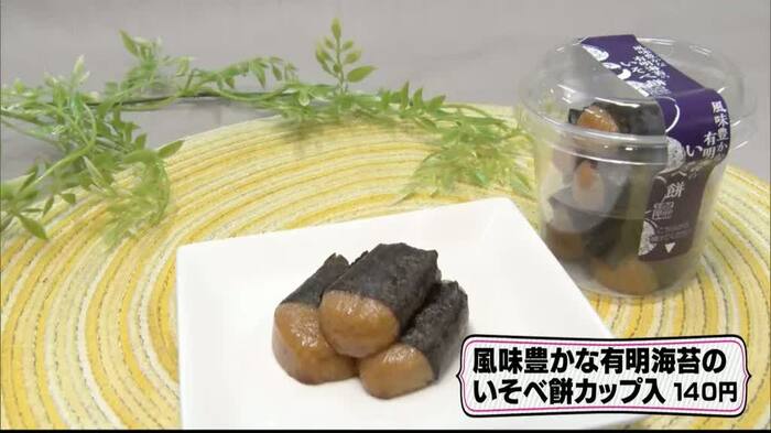 スタジオには、「風味豊かな有明海苔のいそべ餅カップ入」と「あわせ醤油の炙りみたらし団子カップ入」が登場しました。