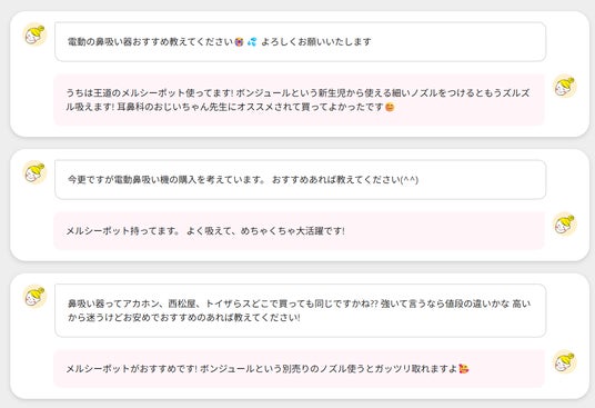 ママ向けNo.1*アプリ「ママリ」の月間400万検索・110万投稿等のデータを独自のロジックで集計し、全国の子育て家族が支持している商品・サービスを厳選して紹介する企画です*1 1,092人のママを対象としたママ向けアプリの認知度・利用経験調査にて、2項目(認知度、子育てママの利用率)で1位を獲得しました (調査実施:2024年3月、アンケートモニター提供元:GMOリサーチ&AI株式会社)
