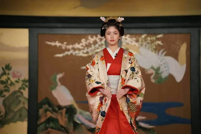 慣れない着物に対して、小芝さんは「打ち掛けが重たくて。休憩で座るにも人の助けが必要となるので、そこは大変です。でも、こんなにすごい刺繍がされたお着物を、普段はなかなか着ることができないので贅沢(ぜいたく)でうれしいです」とニッコリ。