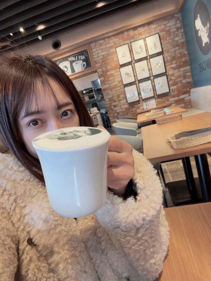 川崎さんはムーミンのラテアートが描かれた抹茶ラテを味わったようで、コップを持ってパシャリ。