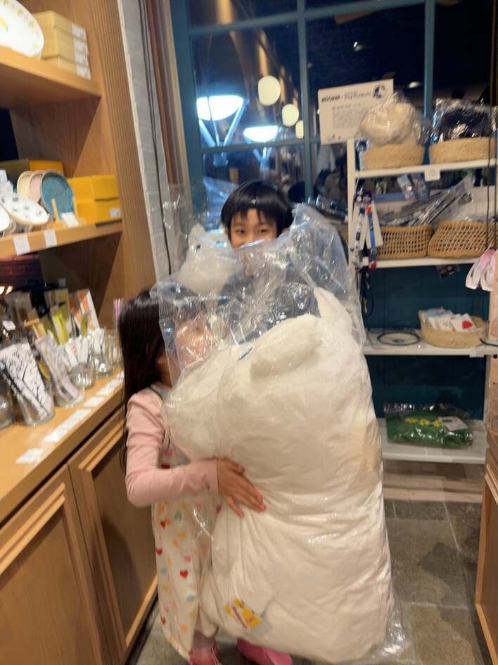 幸せそうな"カゲトラくん"の姿を見た川崎さんは「なかなか高めなお買い物なのでまだまだ先だけどお誕生日プレゼントってことにしました」と、"美人ちゃん"と同じぐらいの大きさのムーミンを購入したんだとか。"美人ちゃん"もうれしそうに抱えていて、テンションが高まっていることがうかがえます。