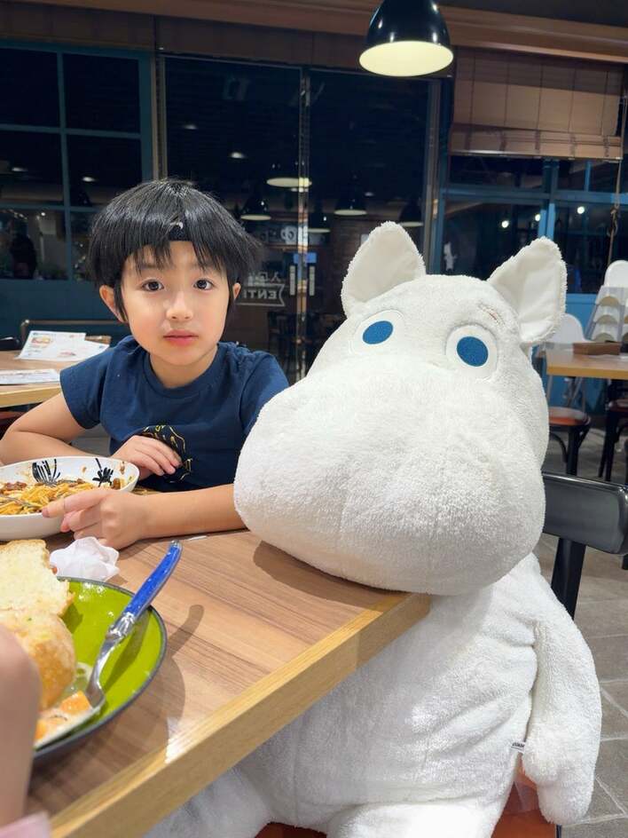 そんな川崎さんとアレクサンダーさん夫妻は、日頃からSNSで家族と過ごす様子をたびたび投稿。今回の投稿で川崎さんは「どこかでムーミンカフェの存在を知ったらしく、カゲトラが前から行ってみたかったんだって」とつづり、家族みんなで軽井沢にあるムーミンカフェに訪れたことを報告しています。