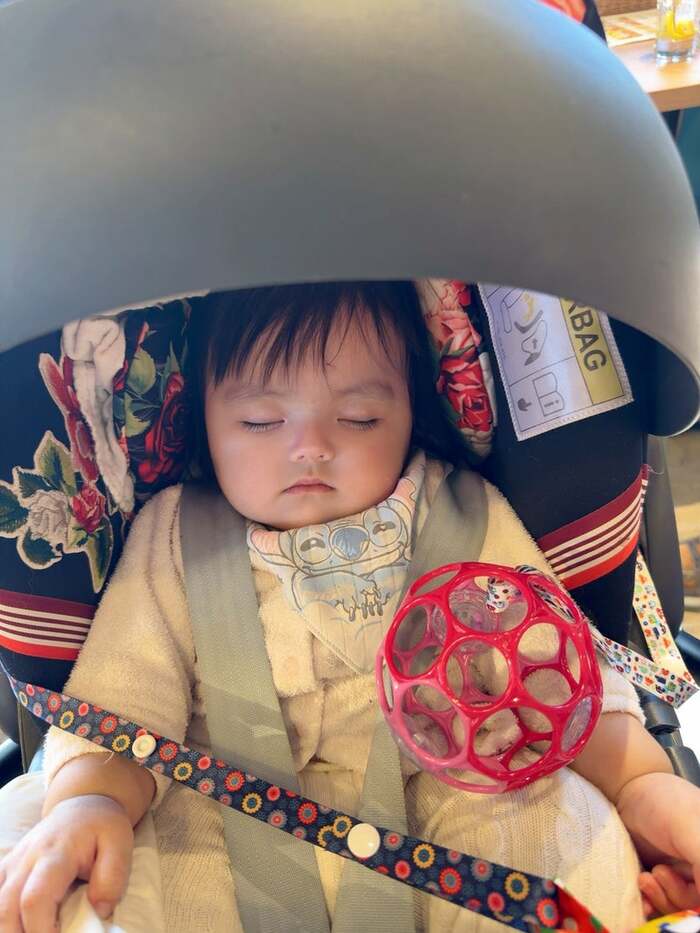 この時の“ググガガちゃん”はというと、ぐっすりとベビーカーで寝ています。