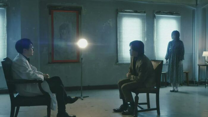 稲生の診察が始めると、武田の背後に女子高生の怨霊が出現。しかし、女子高生の怨霊は、うなり声をあげるだけで話をしません。「君は誰だ?」稲生は何度か語りかけますが、女子高生の怨霊は背後から武田を睨(にら)みつけるだけ。