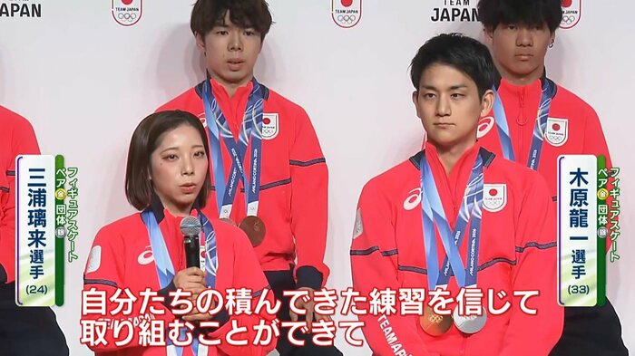 写真撮影の前には、三浦選手の2つのメダルのヒモがきれいに写るよう、木原選手が整えるといった、ペアならではの“絆”の強さが見える場面もありました。