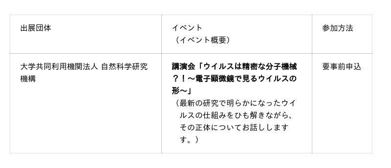 今年の「みなとサイエンスフェスタ」には、合計22の企業、団体、研究機関が出展いたします。