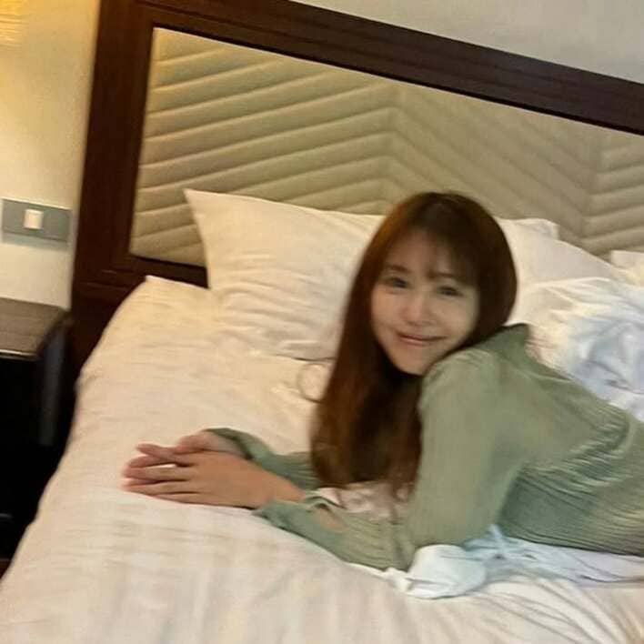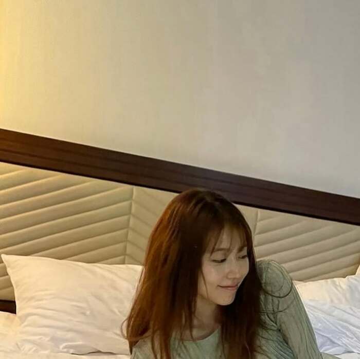 公開された写真には、大きなベッドにうつぶせになり、ごろんと寝そべった有村さんの姿が!