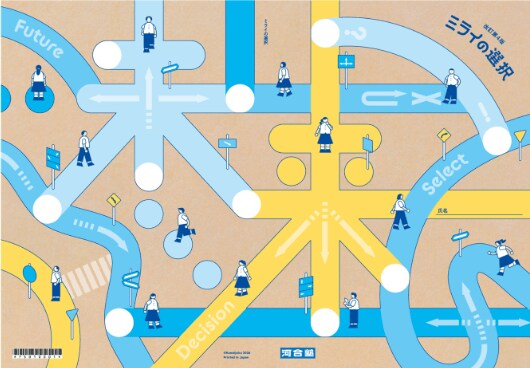 生徒用テキスト表紙デザイン(改訂第4版)。生徒が自身の納得する進路に向かう様子をさまざまな道で表現しています。