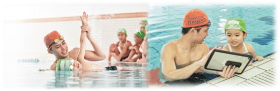 主体的に学ぶ力を育てるアクティブラーニングを、スイミングに取り入れたサービス「スタディスイム」を採用。タブレット端末で自分の泳ぎを客観的に確認することで「考える→試す→伸びる」の好循環をつくり、上達スピードとやる気を引き出します。