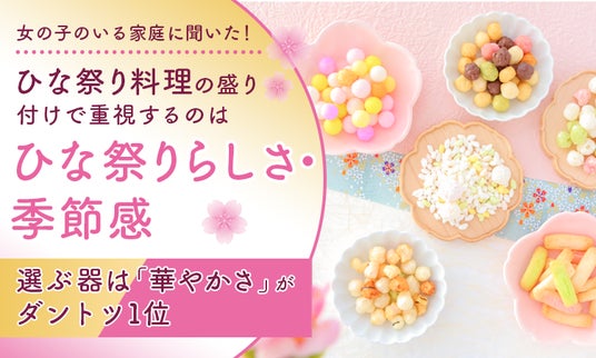 今回の調査では、女の子の子どもがいる家庭のうち、約2割が今年のひな祭りを自宅でお祝いする予定があることがわかりました。盛り付けで大切にしたいこととしては「ひな祭りらしさ・季節感」や「見た目の華やかさ」を選ぶ方が6割以上を占めています。