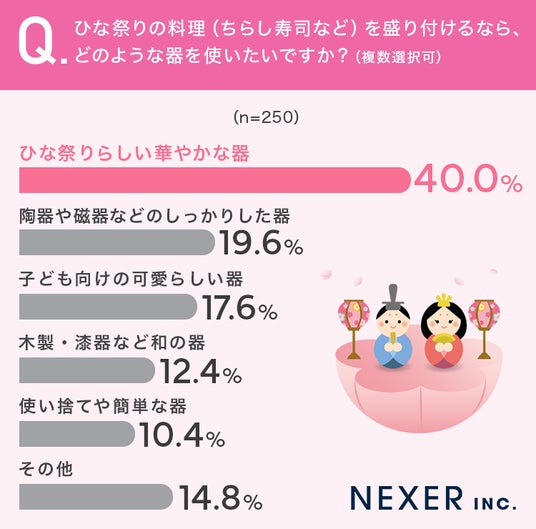 ■40.0%が、ひな祭り料理の器に「ひな祭りらしい華やかな器」を選びたいと回答