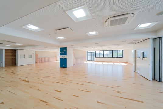 普通教室の壁はスライド式のパーテーションとなっており、空間を自由に使った授業展開ができる。