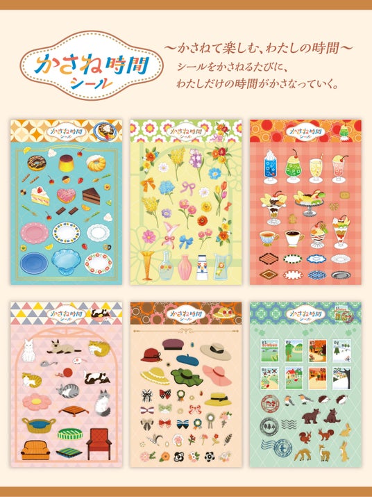 かさね時間シールは全6種類展開。今後のラインナップ展開も計画しています。
