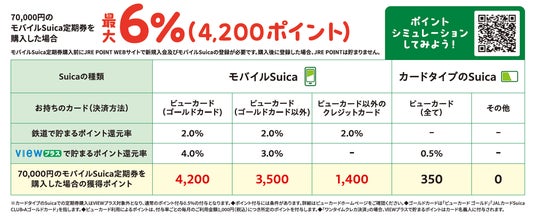 モバイルSuica定期券の購入や、いつもの鉄道利用などで2%(50円ごとに1ポイント)のJRE POINTがどどーんと貯まります!