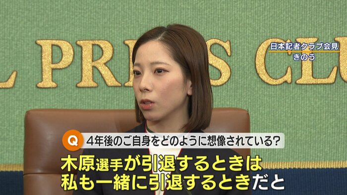 まだ分からないですけど、一つ以前お話させていただいたんですけど、木原選手が引退するときは私も一緒に引退する時だとお話させていただいたので、私が違う人と組んでまた続けるっていうのは絶対ないです。