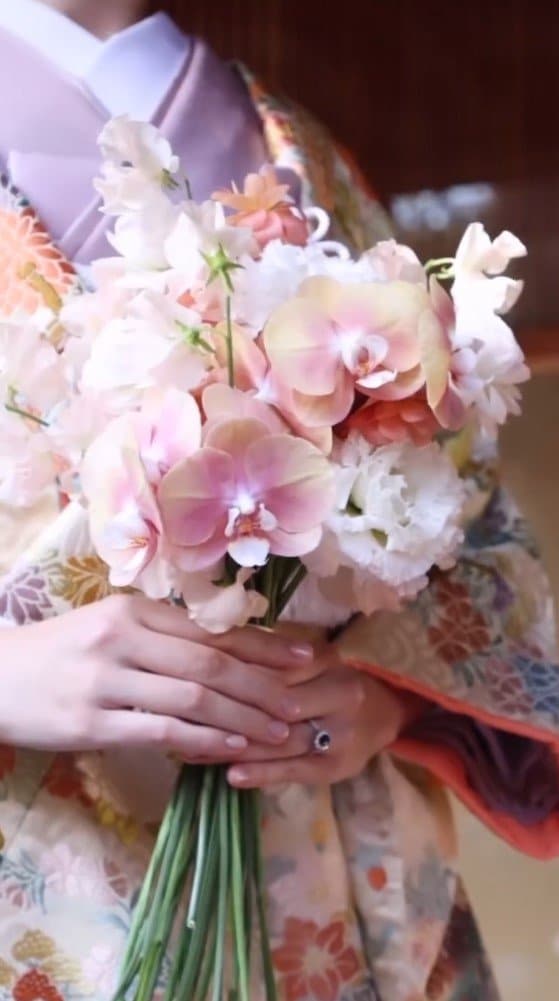 手元にはお花が上品に握られていて、かれんで美しいですね。