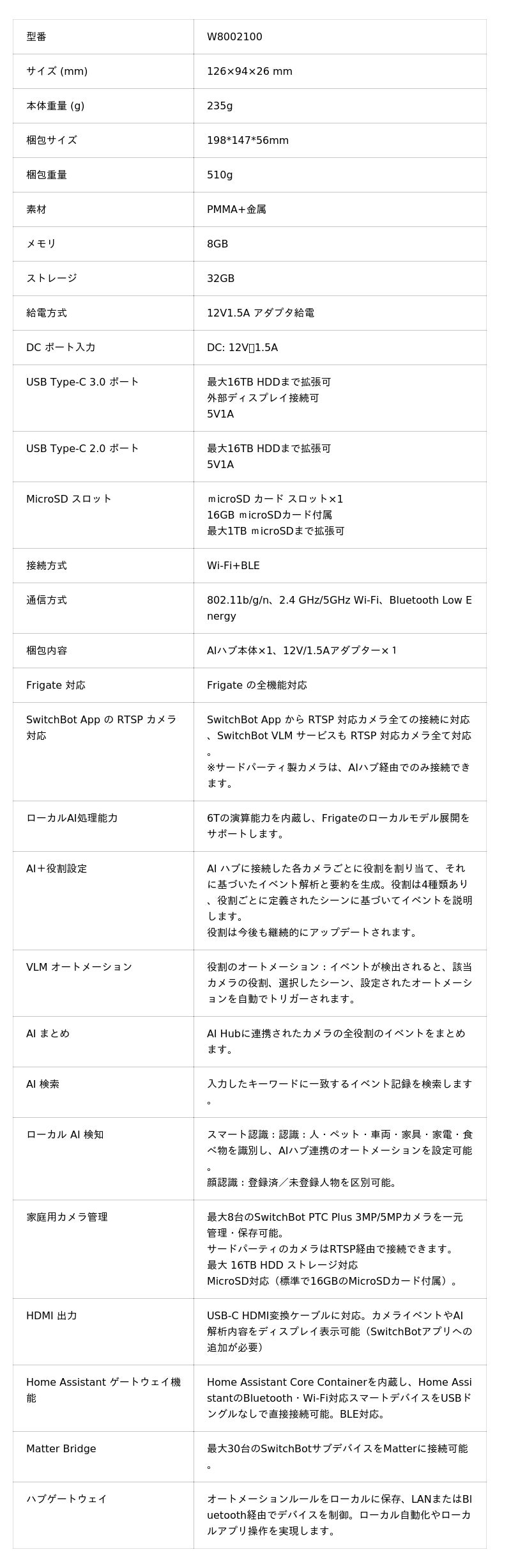 - 赤外線家電の制御:AIハブ本体に赤外線機能はないため、エアコン等の操作には別売のハブ製品(ハブミニ、ハブ2、ハブ3)が必要です。