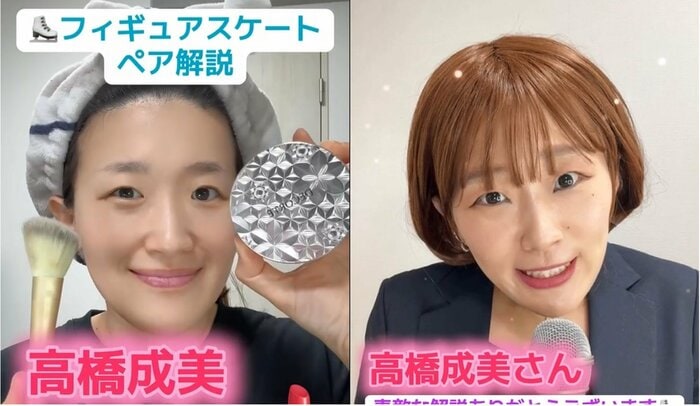 ミラノ・コルティナ五輪で“りくりゅうペア”の演技解説を務め話題となった元フィギュアスケーター・高橋成美さんの“ものまねメイク”を公開し、「本人かと思いました」「めっちゃ似てるっ!」と反響が寄せられています。