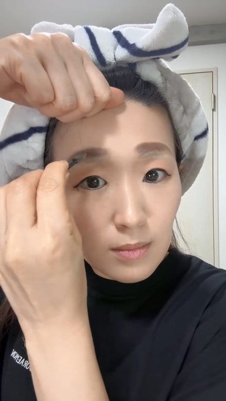 元あった眉のすぐ上に、新たな眉を描き始めました!
