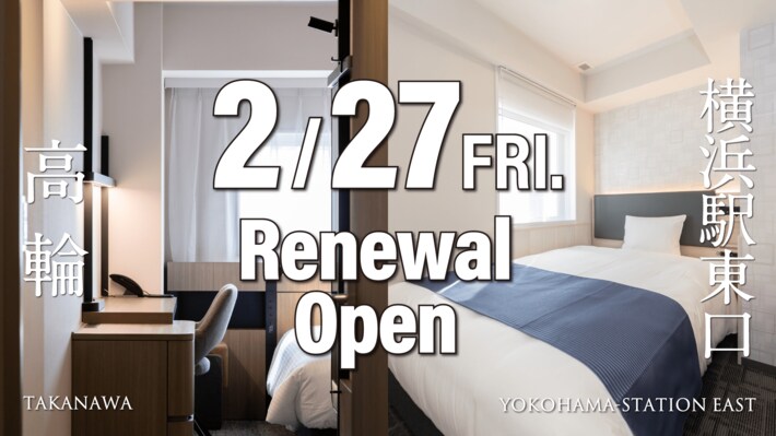 株式会社京急イーエックスイン(取締役社長:染崎 素洋)は、ビジネス・観光需要の高い品川駅・横浜駅エリアにおいて、「京急 EXホテル 高輪」および「京急 EXイン 横浜駅東口」を2026年2月27日(金)に同時リニューアルオープンいたします。