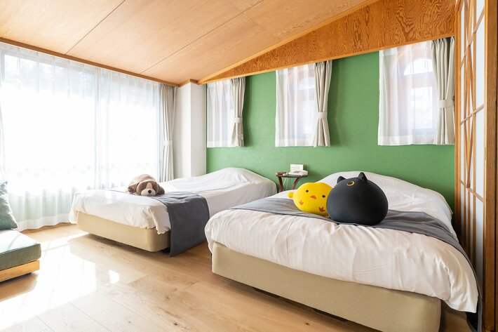 赤ちゃん連れでも安心して泊まれる環境を整えるため、段差のないワンフロア設計と仕切れる畳スペースを採用。53平方メートル のゆとりある客室で、八ヶ岳エリアでの子連れ旅行を快適にサポートします。