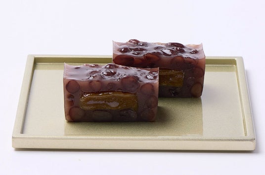 丹波大納言小豆を使用した代表銘菓「あも」。中の求肥に黒糖を使用し、濃厚さをプラスした限定品。