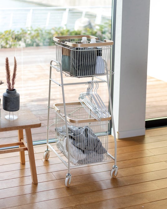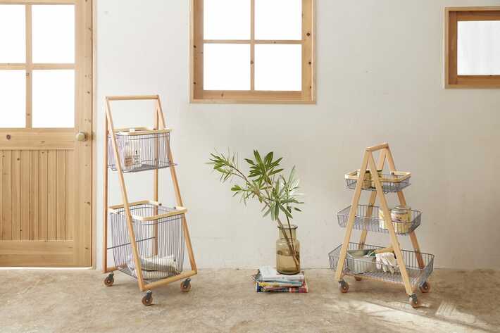 リヴ キャリーバスケットワゴン-S大きさの異なるバスケット棚が使いやすいワゴン。