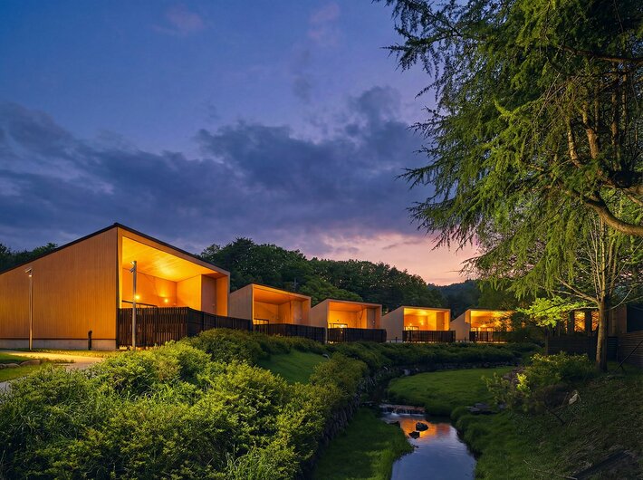全29棟には天然温泉とテラスをしつらえ、大自然に囲まれたプライベート空間で、高原の風を感じながらディナーを食べたり、自然を眺めながら温泉に浸かったり、ゆったりとお寛ぎいただくことができます。高天井で広々としたお部屋は、シーンに合わせてお選びいただける4つのタイプがあり、バレルサウナ付きのVILLAや、るり渓で初の愛犬と一緒に過ごせるVILLAなど、様々な過ごし方をお楽しみいただけます。また、エリア内にはドッグランも併設しております。