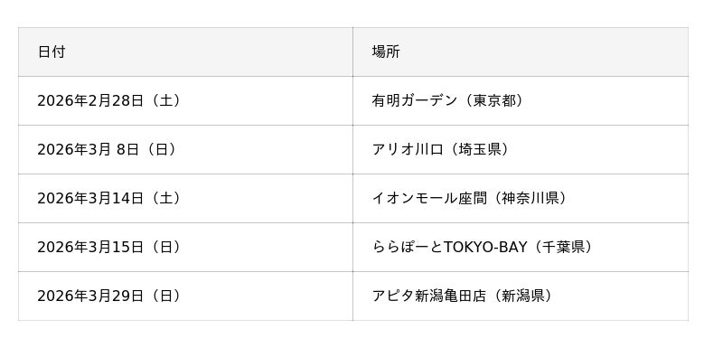 本イベントでは、全国5か所にてパルシステムのこだわりの食品を体験できる試食会を開催します。当日新規でのパルシステムご加入者を対象に、本イベント限定「オリジナルポーチ&缶バッジ」をプレゼント。また、同日には本作のメインキャラクター「ハチュピン」の写真撮影会も実施。「おいしい」と「かわいい」が詰まった、親子で楽しめる特別な体験をお楽しみください。