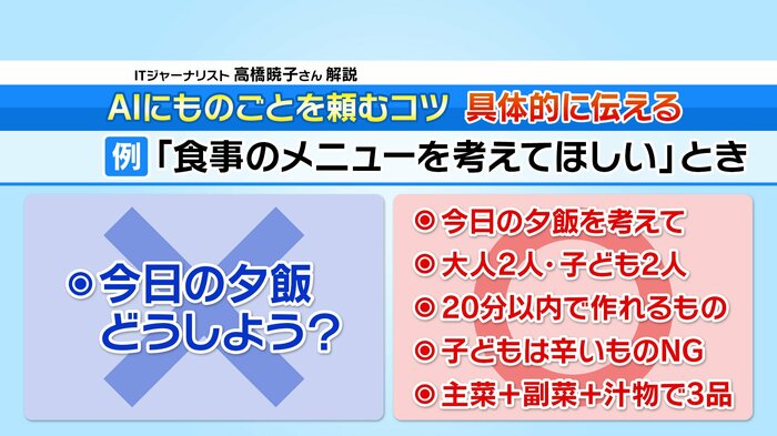 そこでITジャーナリストの高橋暁子さんが、AIへの指示の出し方のコツを解説してくれました。