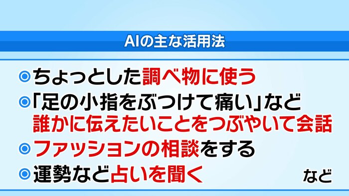 若者を中心に日常的に使用されている生成AI技術。具体的には、ちょっとした調べ物や会話の相手、ファッションの相談や占いなどに使っている人が多いといいます。