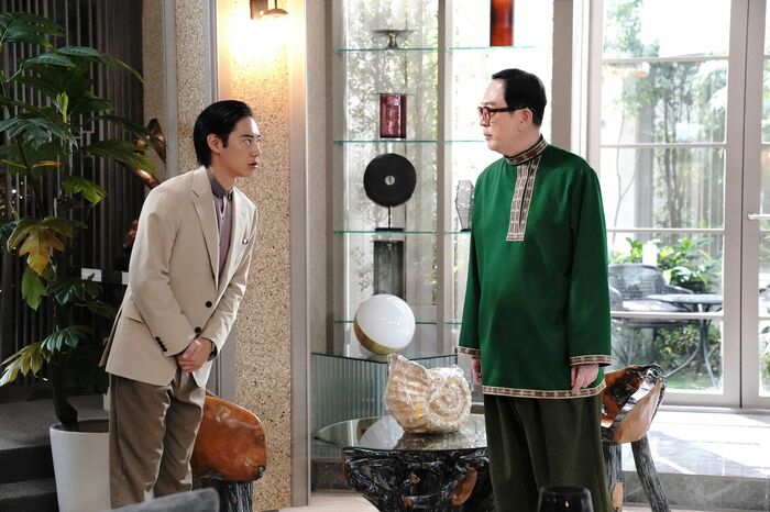 物語の舞台となる寒川邸の美術セットが、めちゃくちゃ豪華なんです。玄関から大広間に入って、キッチン、小さいサウナ、マッサージチェアがあって、2階にも上がれて…。三谷さんは、それを全部使おうとしていました。