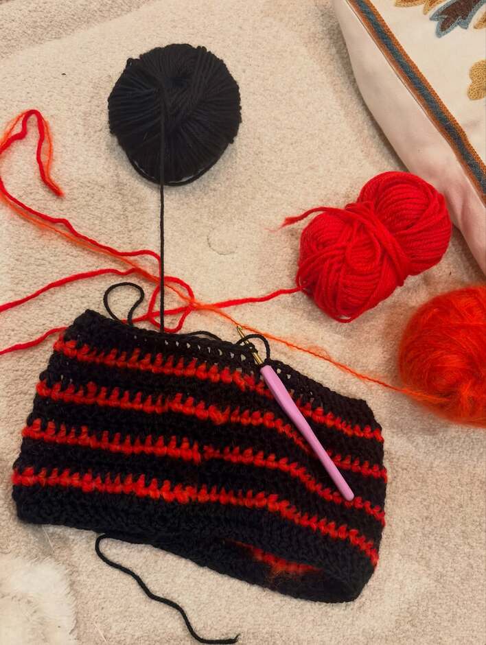 今回の投稿では、黒と赤の毛糸を使ったかぎ針編みをしている様子を公開しました。