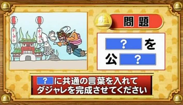 最初は「脳ミングアップクイズ」から、ダジャレ穴埋め問題。「?」に共通する言葉を入れてダジャレを完成させてください。