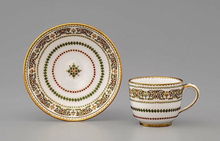 セーヴル「上絵金彩七宝飾カップ&ソーサー」フランス、1785年