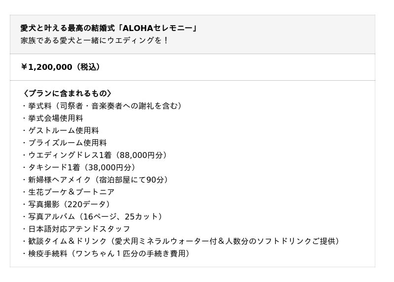 「Lovin’ Hawaii -もっと、特別な場所へ-」をコンセプトに、ハワイでウエディングを展開する2025年6月にオープンしたKAHAWAI CHAPELでは、愛犬も大切な家族として、ハワイで唯一無二のひとときを過ごせる3つの特別プランをご用意しました。ご宿泊においては「アウトリガー・リーフ・ワイキキ・ビーチ・リゾート」と連携し、さらには、長年にわたり愛犬家の海外旅行をサポートしてきた実績を持つ「トラベルウィズドッグ」とのパートナーシップにより、愛犬家にとってより安心のハワイ旅行を楽しめる環境を整えました。青い海と空に囲まれたハワイで、愛犬とともに過ごす時間は、まさに心にのこる特別なひとときとなります。