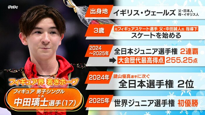 母親の出身地・イギリスで生まれ、父親がフィギュアスケーターだった影響から3歳でスケートを始めた中田選手。