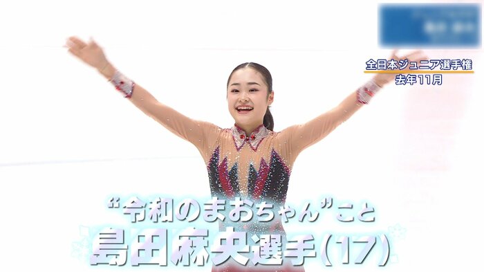 日本人の1人目は、日本フィギュアスケート界の新星“令和のまおちゃん”こと島田麻央選手。