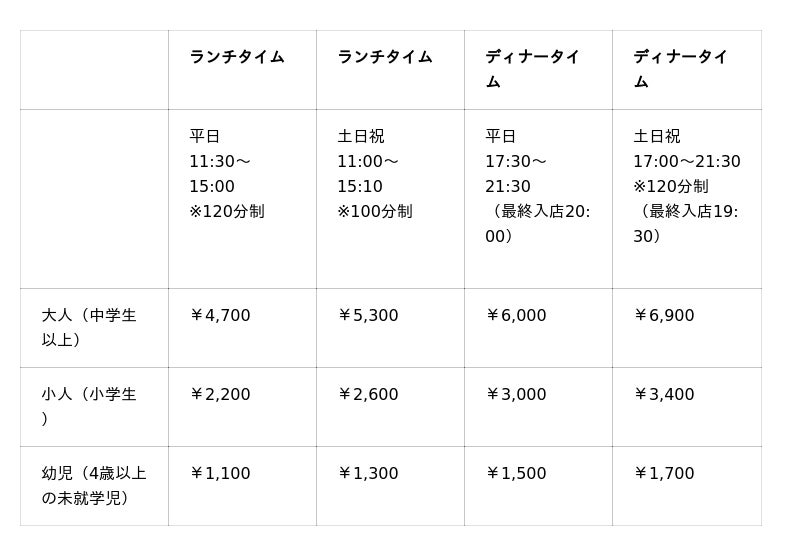 ※表示料金には消費税が含まれております。サービス料は頂いておりません。