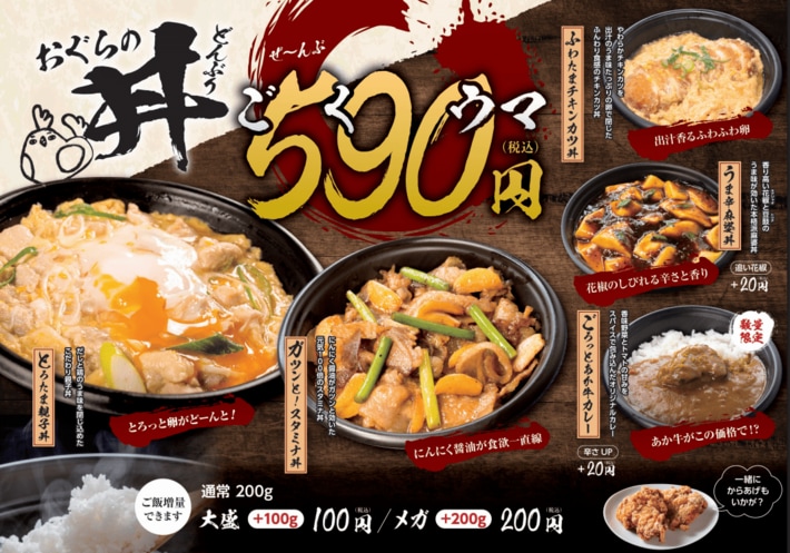 オグラドルフィン株式会社(本社:熊本県熊本市、代表取締役:櫻井 悠矢)が展開する「おぐらの唐揚」は、2026年3月1日より590円(税込)どんぶりメニューを販売開始します。昨今の米や鶏肉の価格高騰を受け、あえて「590(ゴクウマ)円」という価格設定に挑戦。お客様の「普段使い」を支え、満足と驚きをお届けする新ラインナップ5種類をリリースいたします。