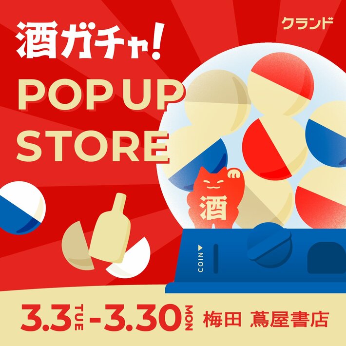 KURAND株式会社(本社:東京都足立区、代表取締役:荻原恭朗)は、弊社が運営するオンライン酒屋「クランド」のポップアップストア「オンライン酒屋「クランド」 POP UP STORE」を、2026年3月3日(火)~3月30日(月)の期間限定で梅田 蔦屋書店(大阪府大阪市)にて開催します。