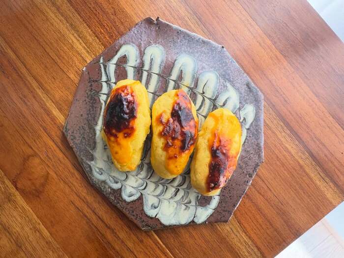 こんがり焼き色がついたスイートポテトが完成!もともと甘みがしっかりあるため、砂糖は不使用とのこと。パクッと一口食べただけでも、うま味が口いっぱいに広がりそうです。