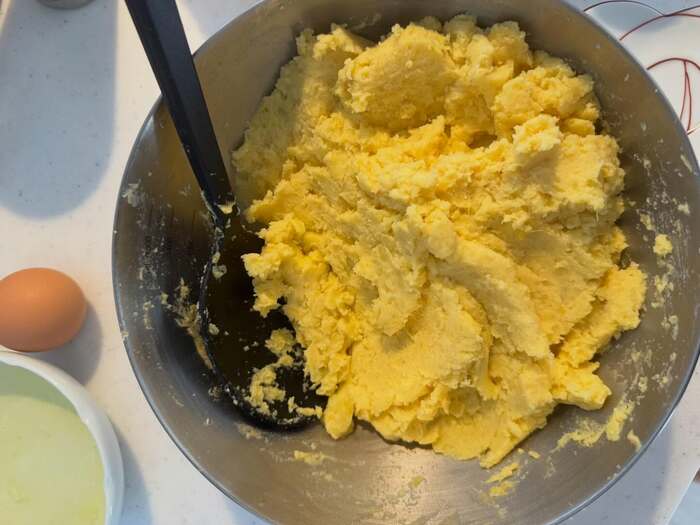 写真を見ると、大きなボウルにすりつぶされた さつまいもがたっぷり入っています!