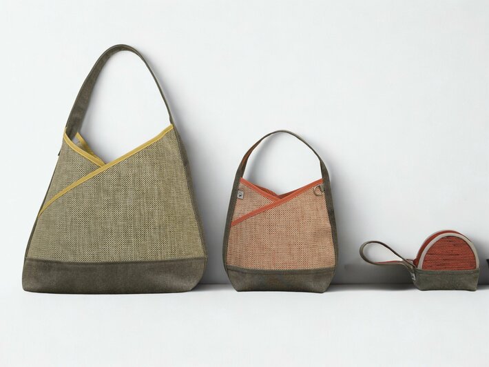 紙布の軽やかな質感と、尾道帆布に施した鉄粉プリントの力強い表情を融合。自然素材と産業素材が交差する、広島発の新しいテキスタイルプロダクトです。