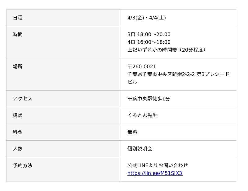 占い師養成CAMPは毎週オンラインで説明会を行っておりますが、このたび千葉校で直接個別説明会を行います。