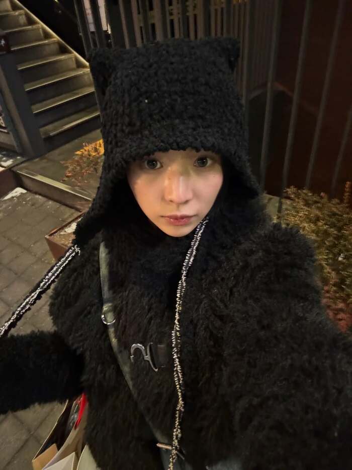 一方、夜の歩道で撮影されたカットでは、猫耳の形状が特徴的なモコモコのフード付きコートを着用。これまでのクールな印象とは打って変わり、愛らしい一面をのぞかせています。