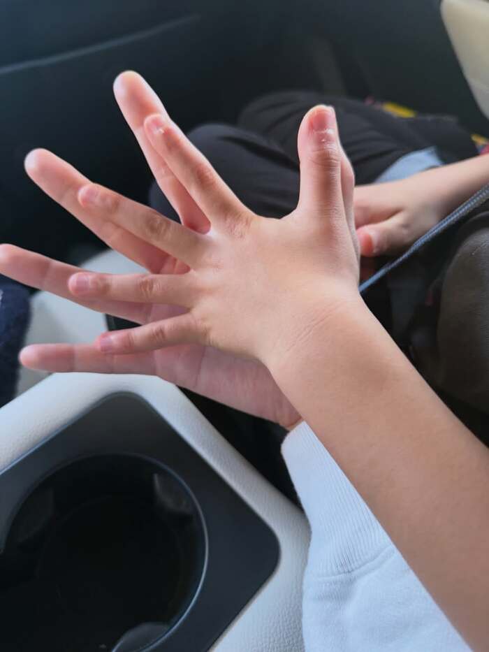 道中の車内で撮影したと思われる写真には、安田さんの手と次男の手でしょうか?