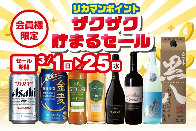 リカーマウンテン各店では3月1日(日)から「会員様限定 リカマンポイント ザクザク貯まるセール」を開催します